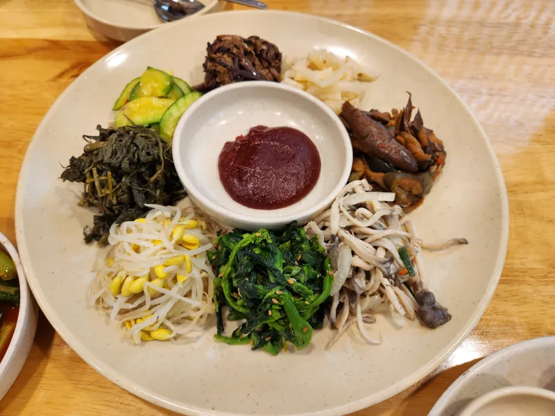 Jumak Boribap Seoreung Bonjeom is a large-scale Korean restaurant near the Seoreung royal tombs in Goyang-si, Gyeonggi Province, divided into a main building, annex, and new building that together demonstrate its substantial capacity. The interior evokes a rustic countryside tavern atmosphere, with a mix of floor-seating and table arrangements. The signature boribap arrives with an assortment of fresh seasoned vegetables, and mixing in sesame oil and gochujang brings out the nutty, chewy texture of the barley rice alongside the crisp brightness of the greens. The namul side dishes maintain mild, homestyle seasoning without excess salt, served in sufficient quantity. The teolleogi sujebi is another headlining dish, featuring a doenjang-based broth loaded with dried shrimp and assorted vegetables. The sujebi dough is rolled thin and achieves a pleasantly springy texture that slides down easily, with portions generous enough to fill two adults. Opinions on the depth of flavor are divided, with some finding it satisfyingly rich and others describing it as ordinary. The stir-fried baby octopus carries a subtle char-grilled smokiness and comes with lettuce wraps on the side. The seasoned grilled half-dried pollock, which has been patented as a recipe, draws mixed reactions, and the doenjang jjigae registers as competent but unremarkable. The pickled radish and cucumber side dishes receive consistently positive mentions. Accessibility from western Seoul, particularly the Gangseo area, drives heavy family traffic, and parking attendants stationed on-site manage the spacious lot efficiently. Queue tickets are distributed at the new building, and while waits occur during standard meal times, the large seating capacity keeps the line moving at a reasonable pace. Staff interactions under the pressured environment may come across as brusque or impatient, a point that multiple reviews have noted.